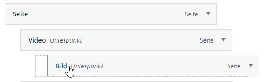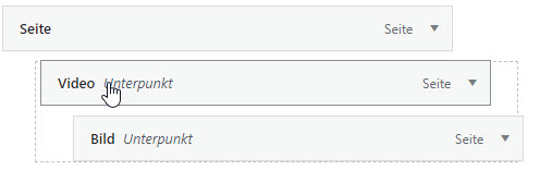 Ziehen Sie ab dem gewünschten Menü oder Unterpunk an eine andere Position, alle Unterpunkte werden automatisch mitverschoben.