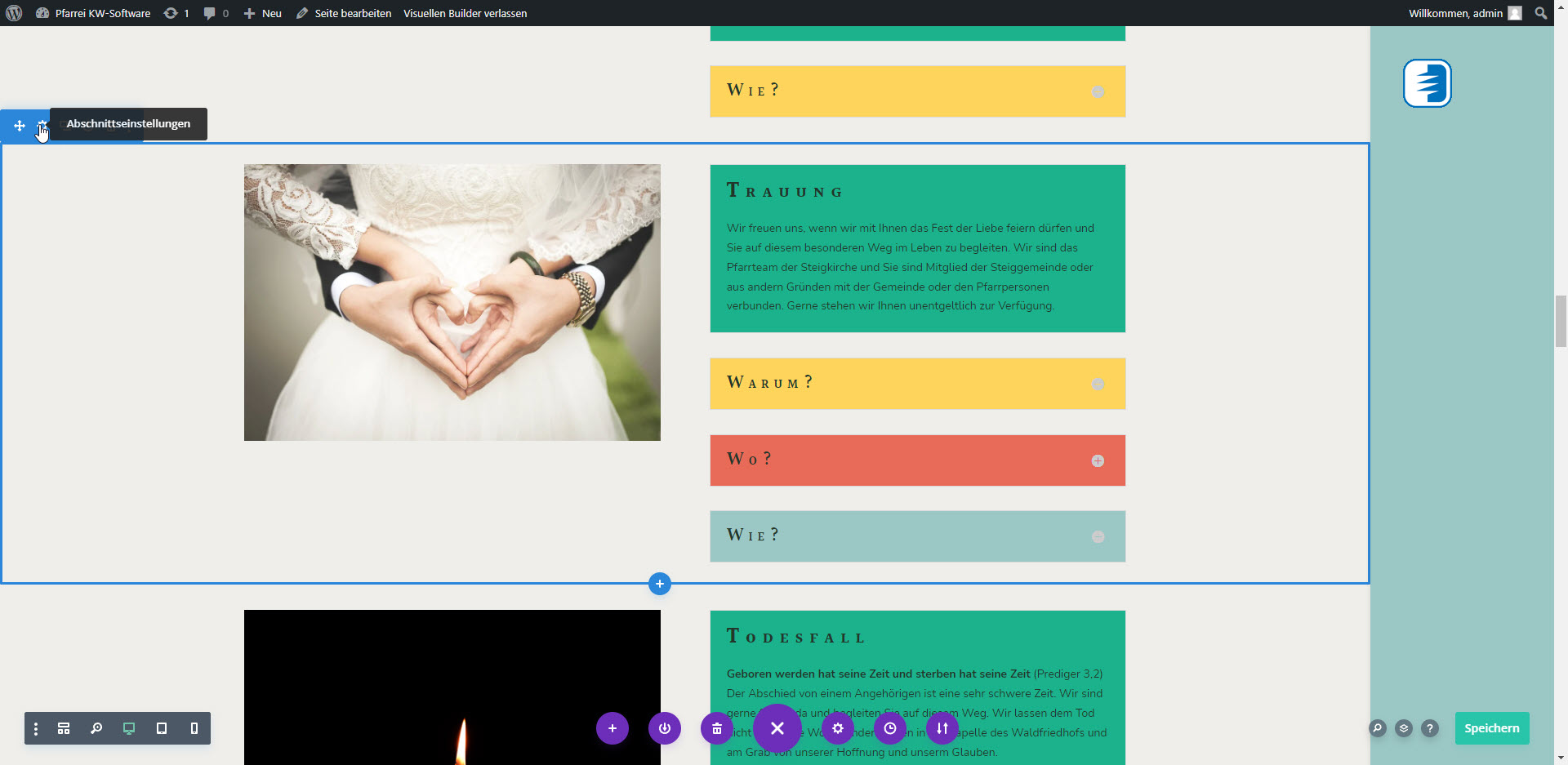 Bitte Bestätigen Sie Ihre Änderungen in den Einstellungen und Speichern/Veröffentlichen Ihre Seite bevor Sie sie verlassen.