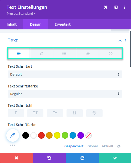 Wenn Sie bereits eine spezielle Textformation auf Ihrer Seite eingebunden haben, empfehlen wir Ihnen, die Vorlage der Divi-Bibliothek zu verwenden.