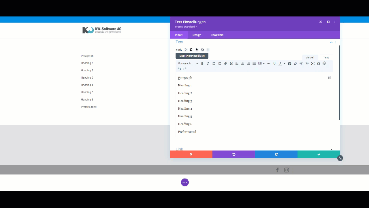 Text Modul bearbeiten - Direkte Anpassungen im Text