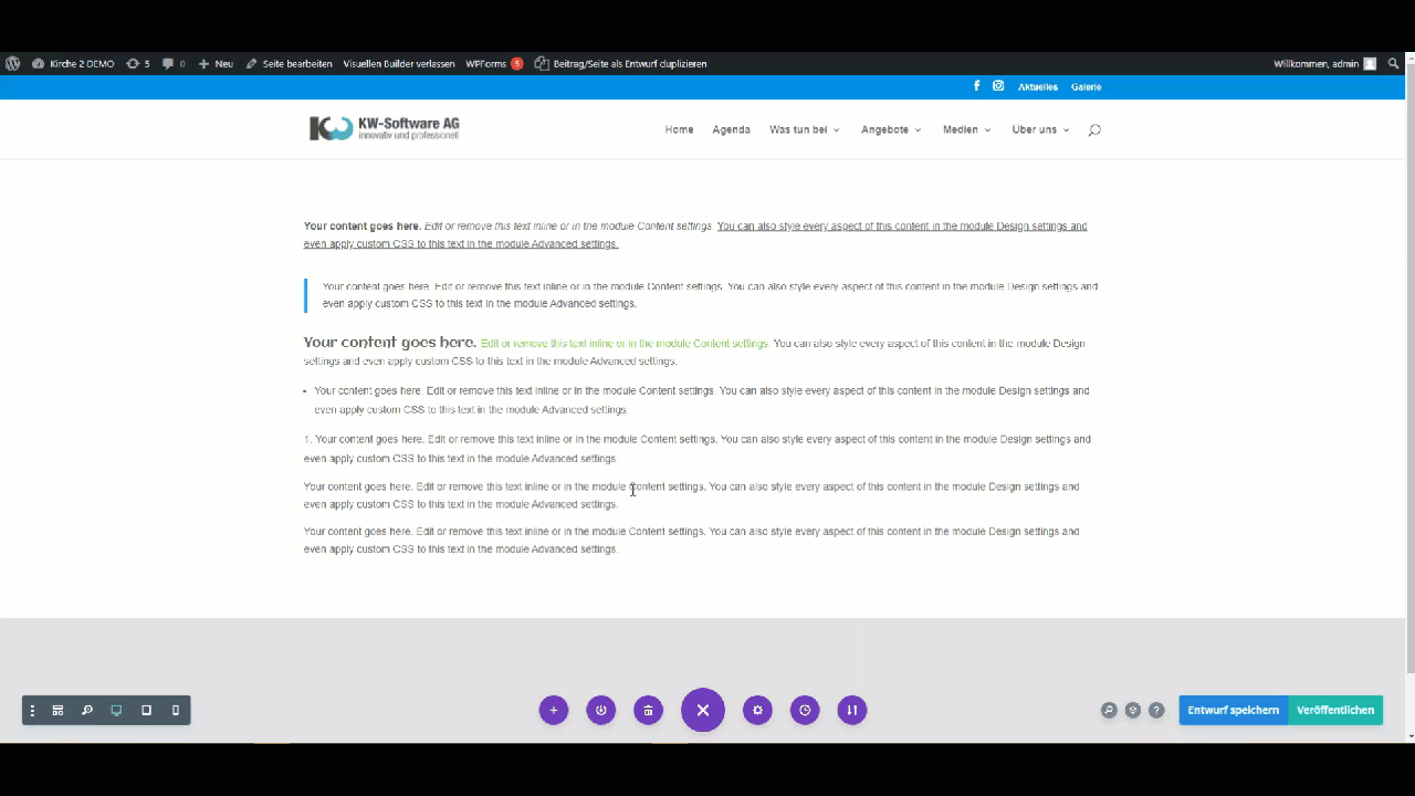 Das Text Modul wird nun auf Ihrer Seite angezeigt.