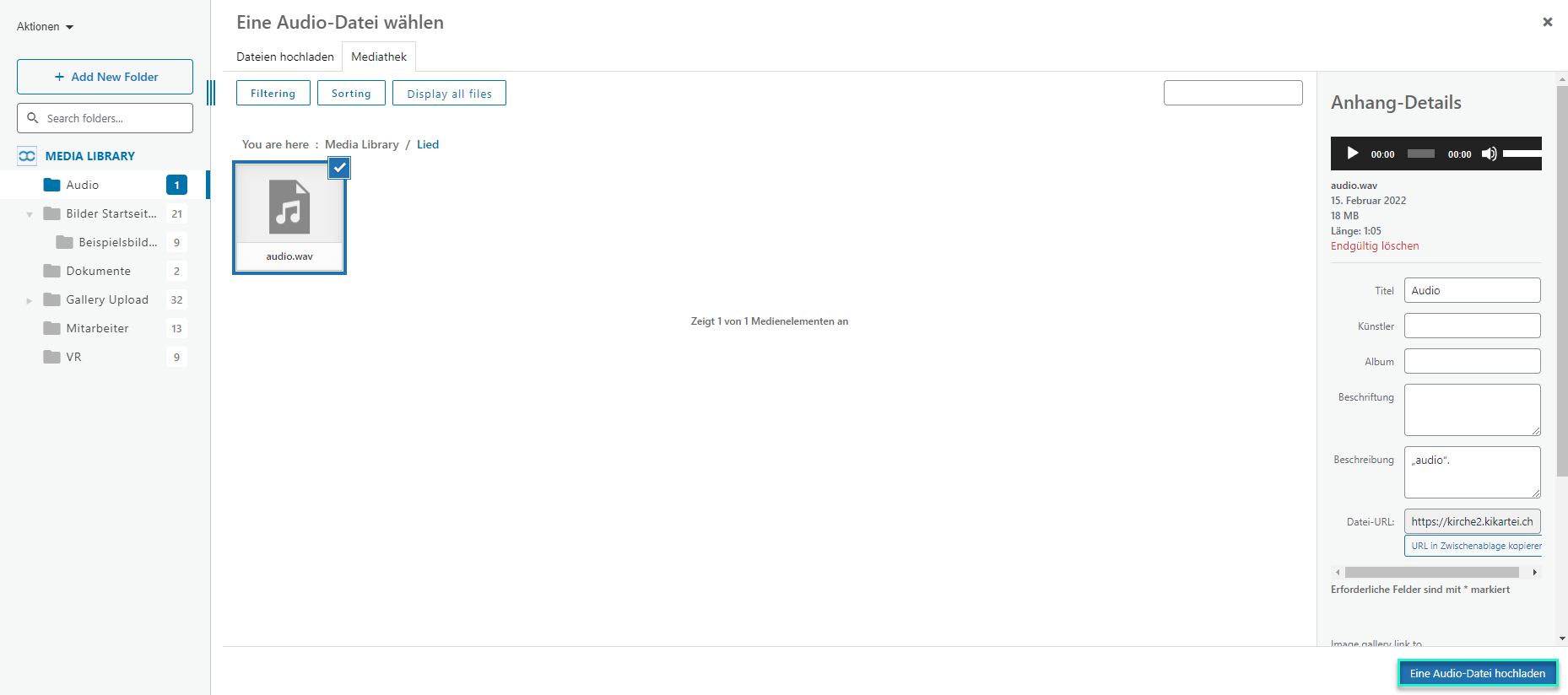 Die Audio-Datei ist nun auf Ihrer Seite ersichtlich.
