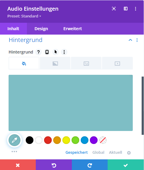 Bei den Einstellungen “Inhalt” unter dem Punkt “Hintergrund” können Sie die Hintergrundfarbe festlegen.