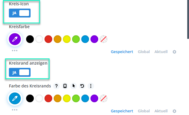 Kreis-Icon: Sie legen Fest ob das Icon Rund ist. Wenn Sie “Ja” wählen, können Sie weitere Einstellungen vornehmen.