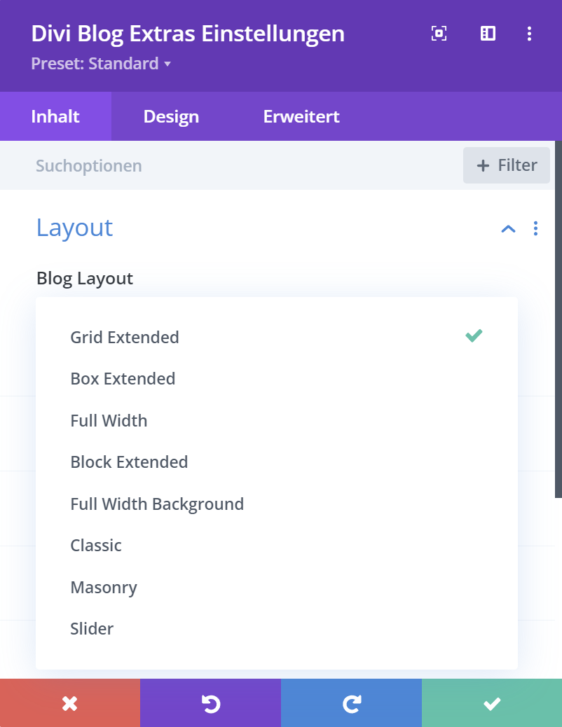 Wählen Sie “Grid Extended” um Ihren Blog so darzustellen.