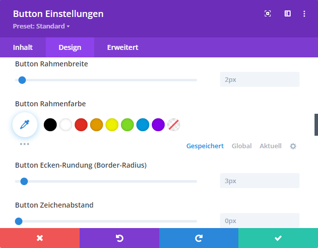 Rahmenbreite: Sie können wählen wie Breit der Rahmen des Buttons sein soll.