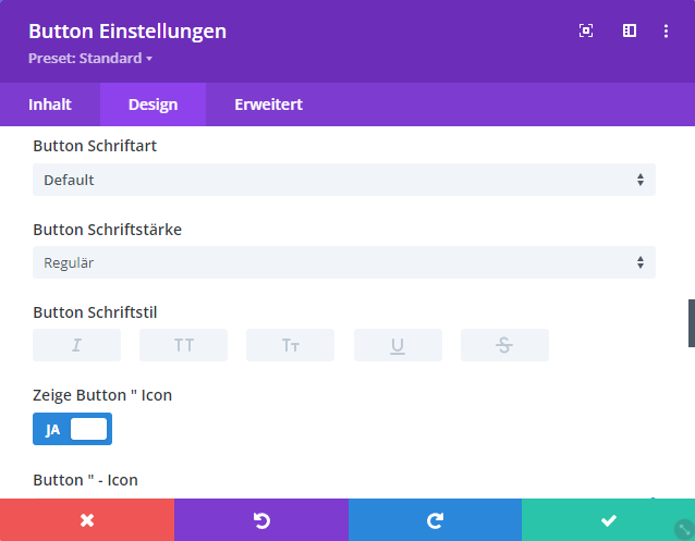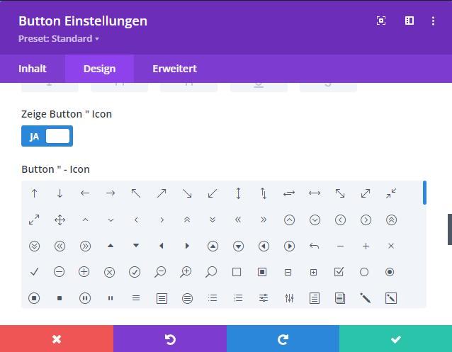 Button ” -Icon: Sie können ein Icon auswählen, welches Sie im Button anzeigen möchten.