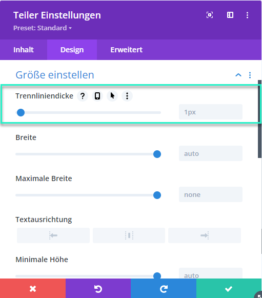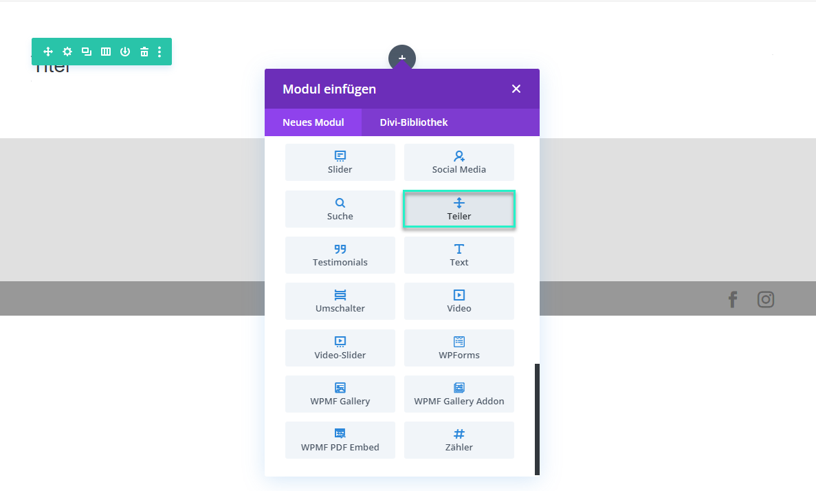 Zwischen dem Teiler und dem oberen Modul können Sie den Abstand via Drag & Drop zurecht ziehen.