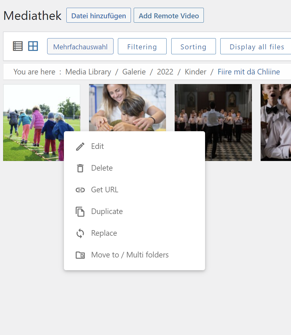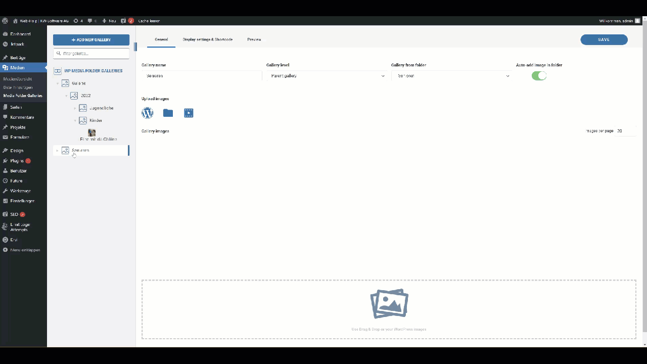 Ordner können Sie mit der rechten Maustaste bearbeiten. Sie können den neu eingefügten Ordner via drag & drop zur aktuellen Galerie verschieben.