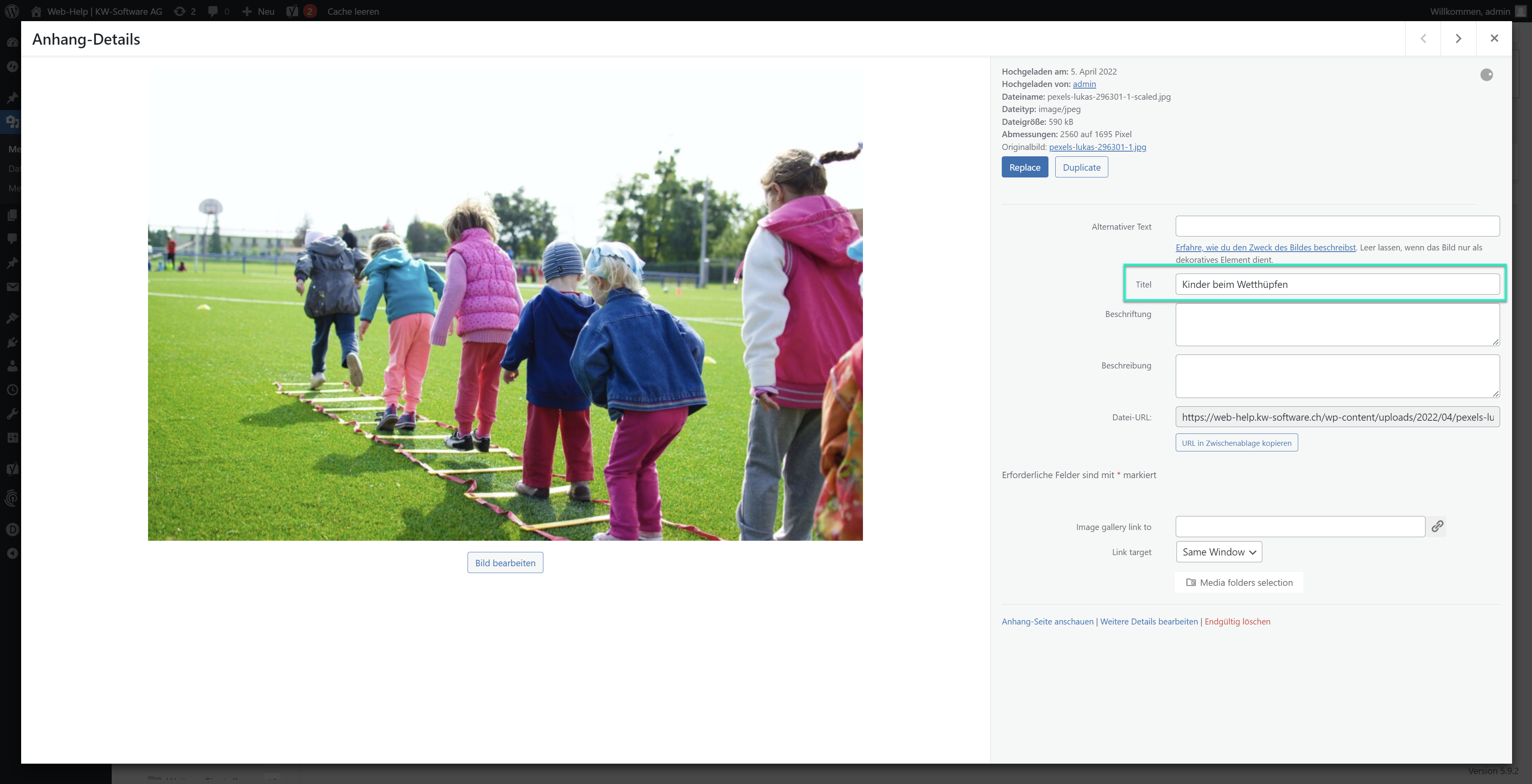 Wenn Sie sich bei den Auswahlmöglichkeiten für “Edit” entschieden haben, können Sie verschiedene Angaben zum Bild machen.