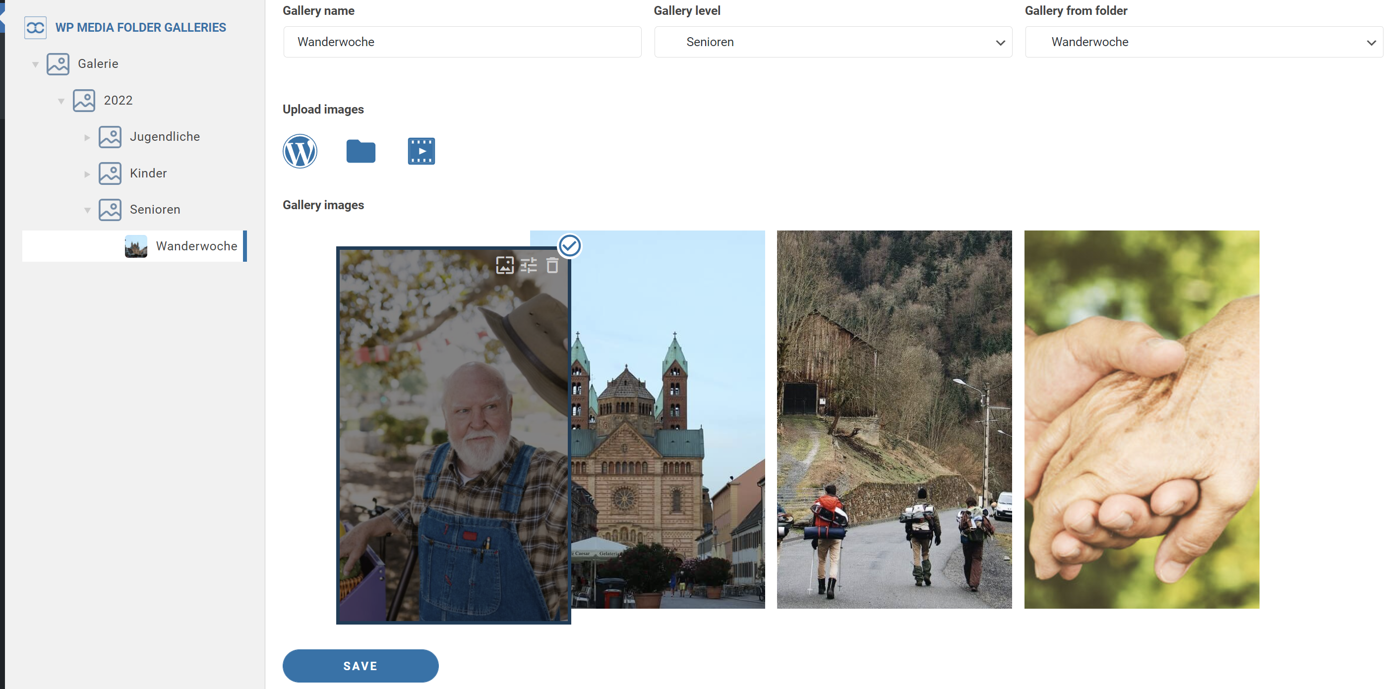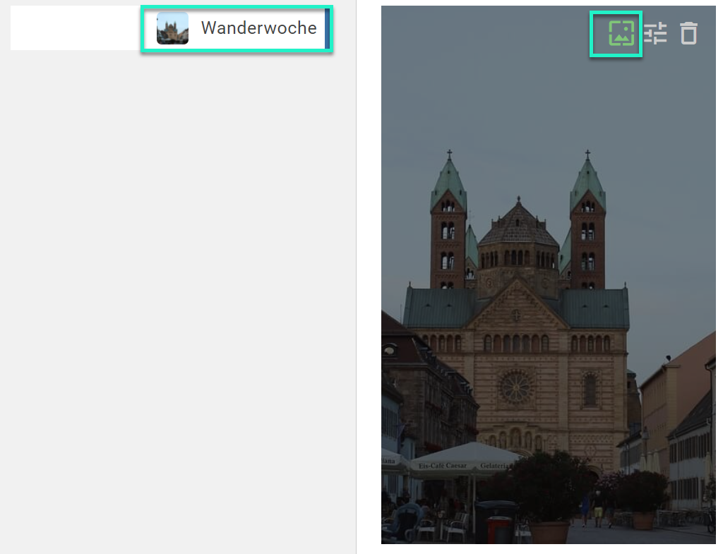 Wenn Sie auf einen Ordner klicken und ein Bild auswählen, können Sie dieses dort als Vorzeigebild festlegen, dieses bearbeiten oder aus der Galerie löschen.